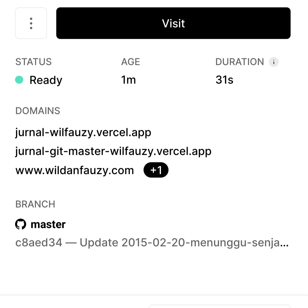 Vercel sebagai bapak dari nextjs, paling cocok untuk website yang berbasis javascript seperti gatsby, nextjs dll, disini saya masih menggunakan repositori yang sama dan menggunakan static site generator yang sama juga yaitu hugo, dan hasilnya build time dari vercel 31 detik.