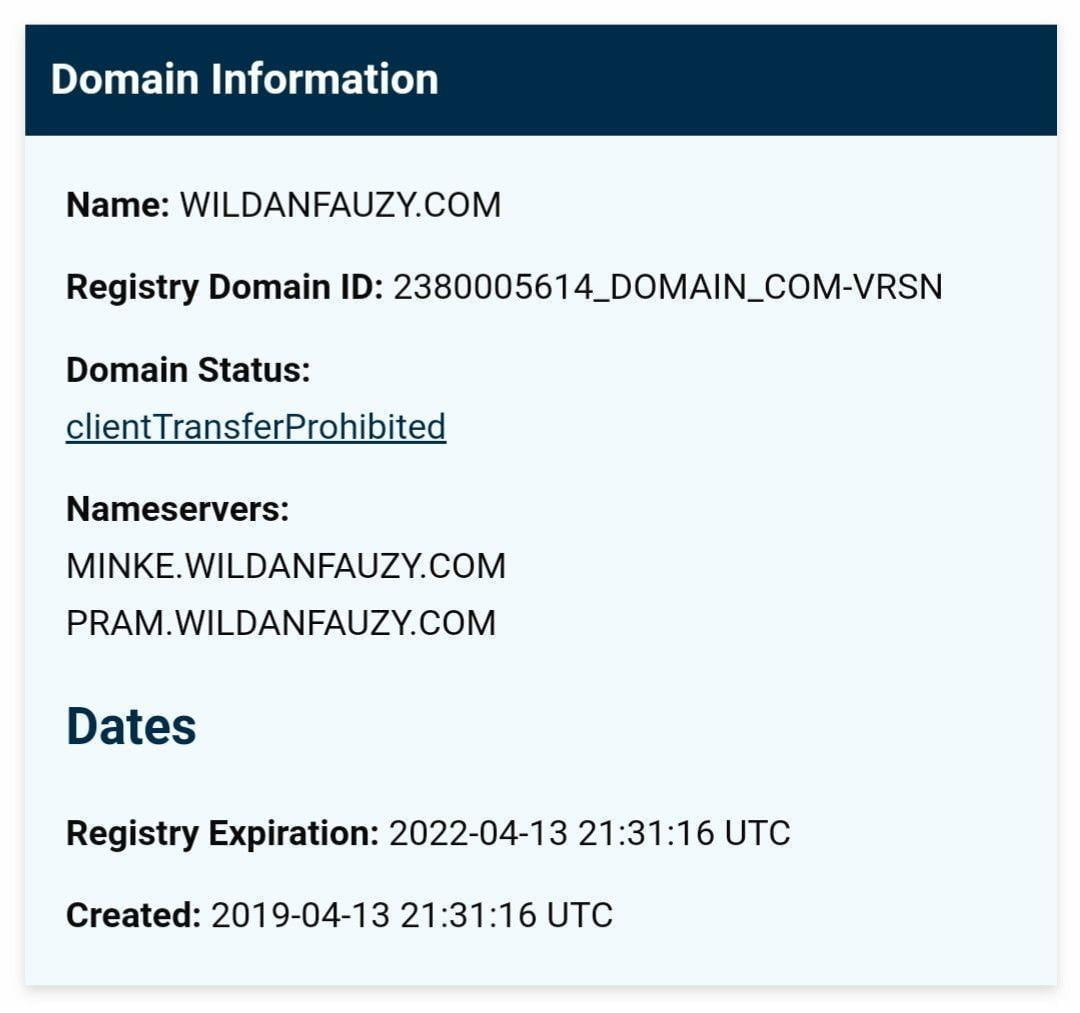 Disini saya terinspirasi dengan tirto.id maka menggunakan nama untuk ns pram dan juga minke hehe, bebas mau nama pacar atau nama kucing periharaan, membuat child nameserver menjadikan website lebih profesional ketika melihat di whois 😀