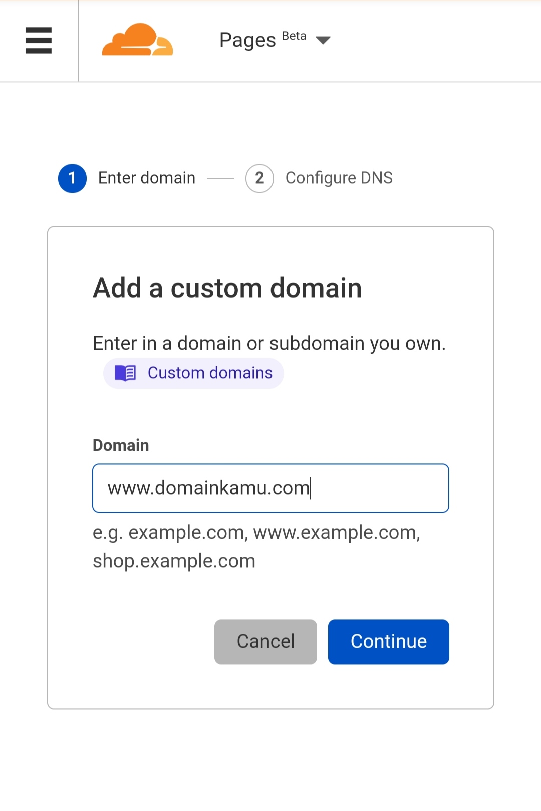 Selamat blog kalian berhasil dihosting di cloudflare pages, kalian akan mendapatkan subdomain pages.dev sebagai preview blog, tahap terakhir tinggal setting custom domain dengan nama domain kalian.
