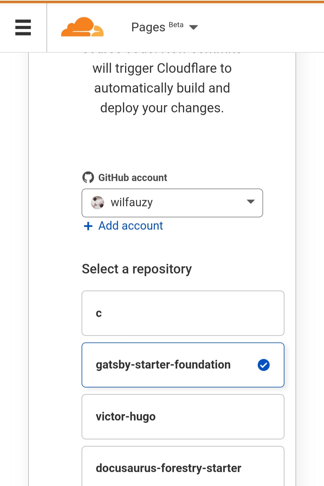 Kali ini saya menggunakan cloudflare pages, karena akhirnya mendapatkan akses beta setelah menunggu beberapa bulan request access.